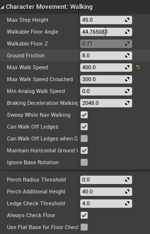뛰기의 경우, 위의 Max Walk Speed 를 조정해 주기만 하면 된다.