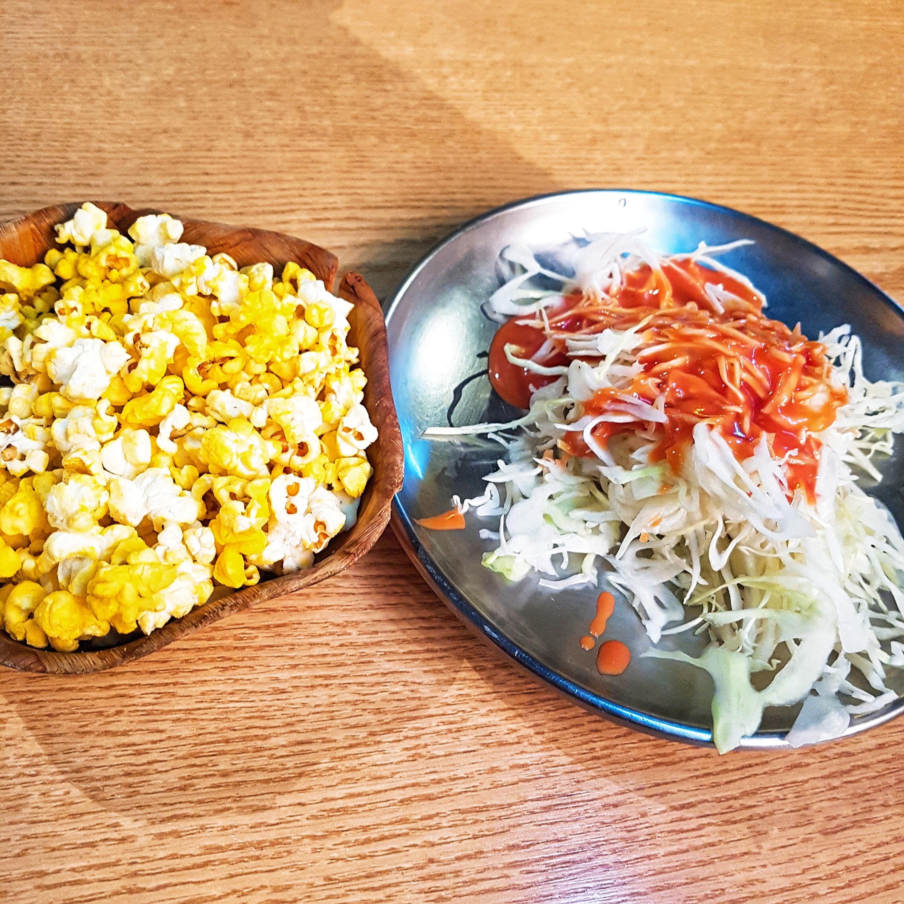 Popcorn and salad are served before you order. Well, you can eat as much as you want!