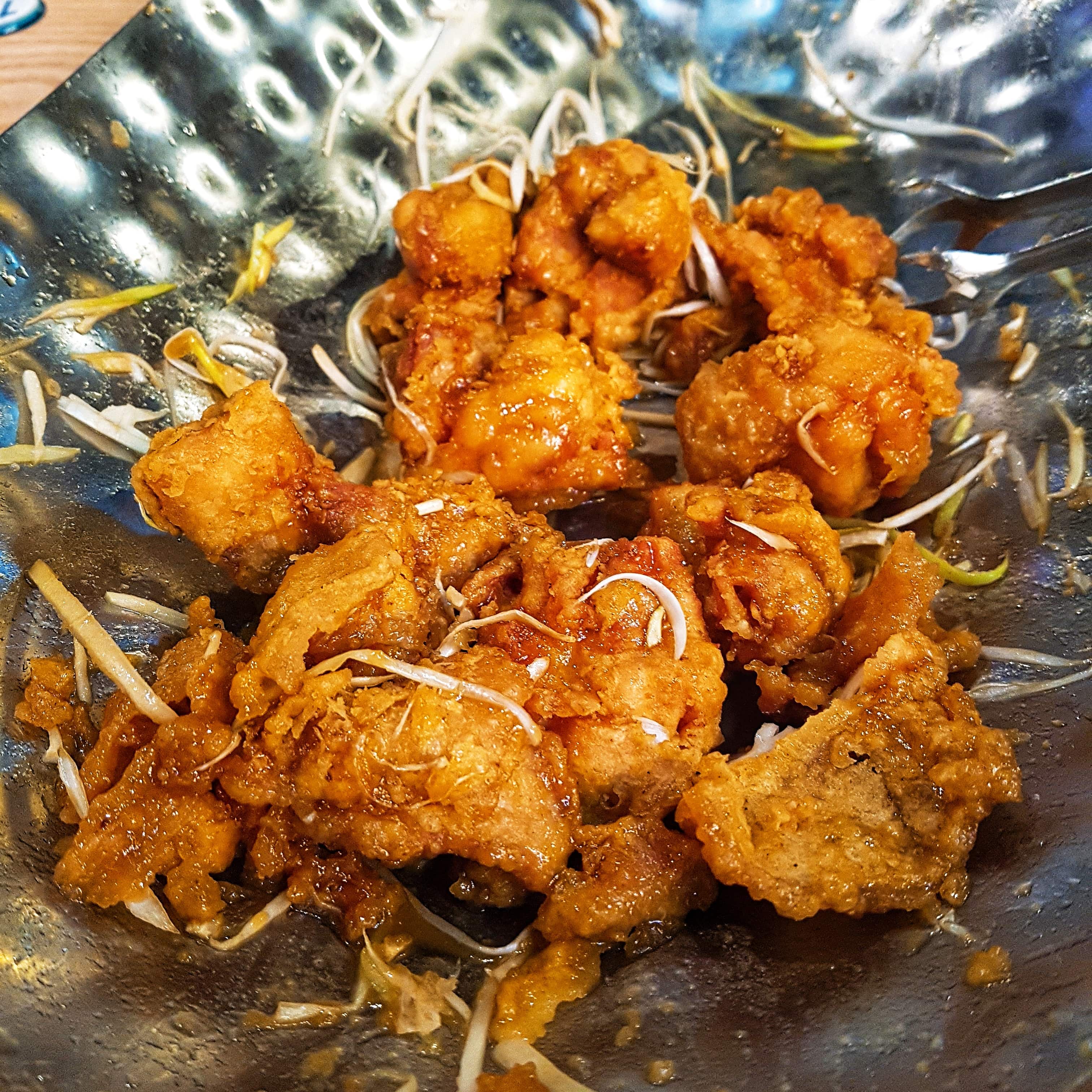 This is "Pa-Dak"(Fried Chicken with sliced leek). I know it does not look like the other foods I uploaded, but It was awesome.