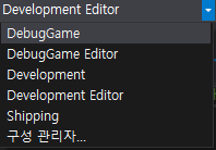 - DebugGame : 자세한 디버깅을 위해 최적화가 안 된 결과물을 생성하는 빌드 구성