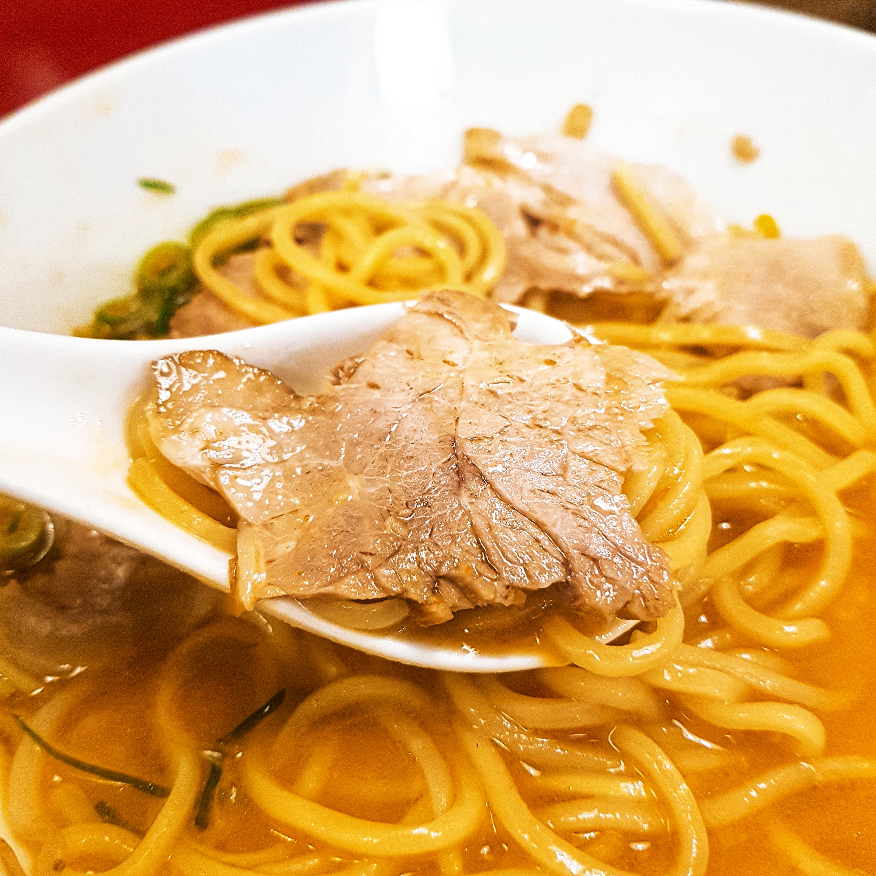 And this is '辛 돈코츠 라멘', the basics of Japanese ramen, but spiced version. The noodle is less thicker than the one before. It is located in left top in the menu plate.