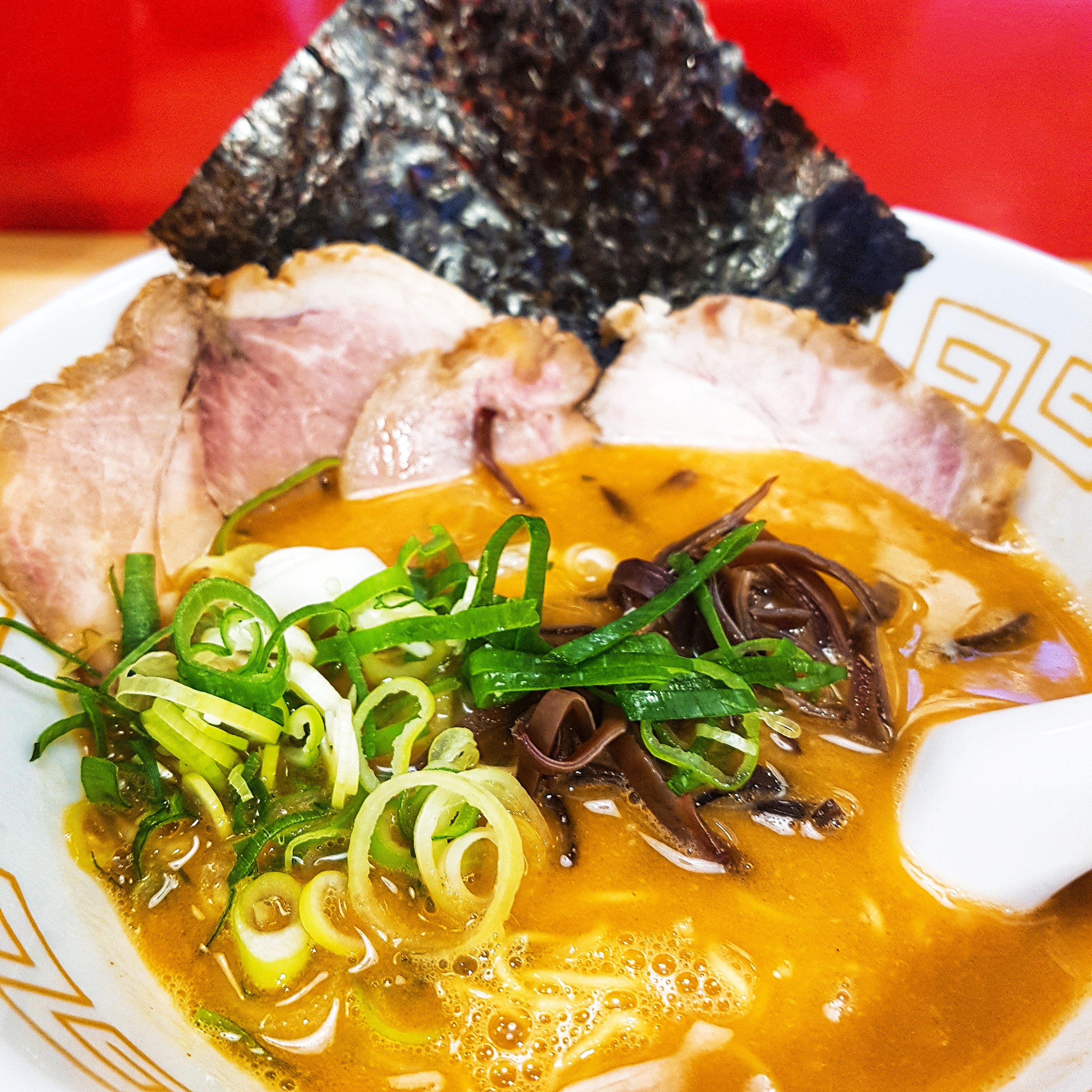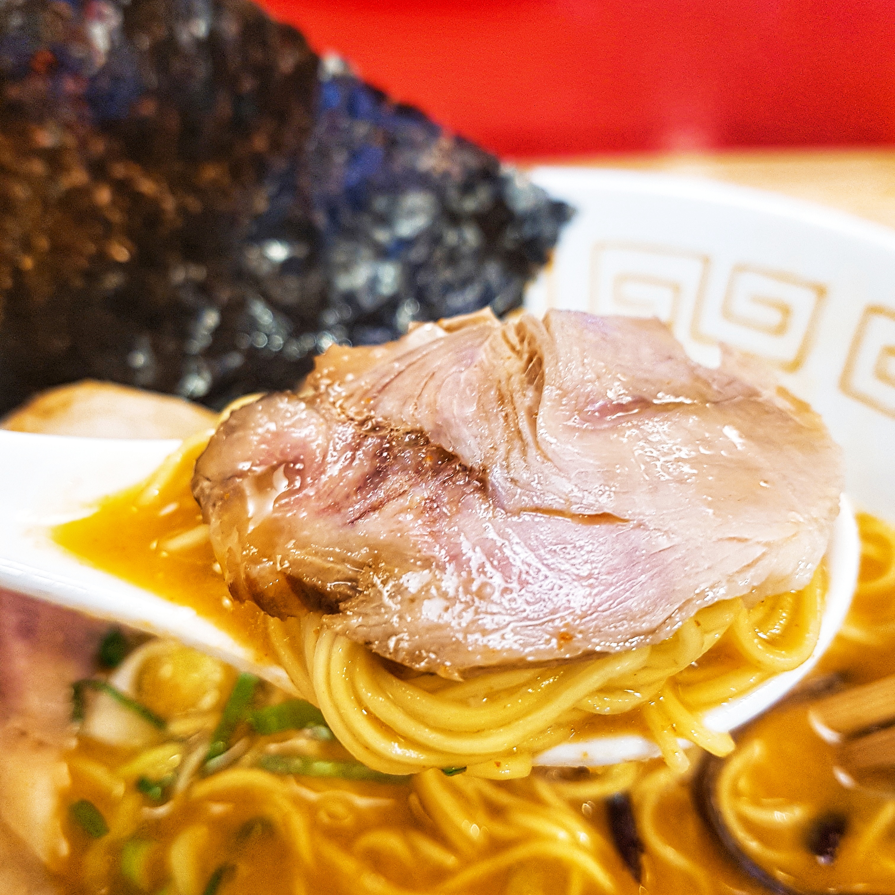 And this is '辛 돈코츠 라멘', the basics of Japanese ramen, but spiced version. The noodle is less thicker than the one before. It is located in left top in the menu plate.