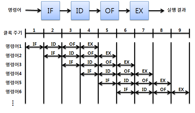 직관적으로는 b = a + 1 이 a = 1 보다 먼저 실행될 것 같지만, 컴파일러가 어셈블리 언어로 번역한 것을 보면 a = 1 이 더 먼저 실행되기도 한다. 물론 b 와 a 에는 각각 1이라는 값이 제대로 들어가지만, 컴파일러는 작업의 효율성을 위해 코드의 실행순서를 변경한다. 이를 파이프라이닝이라고 부른다.