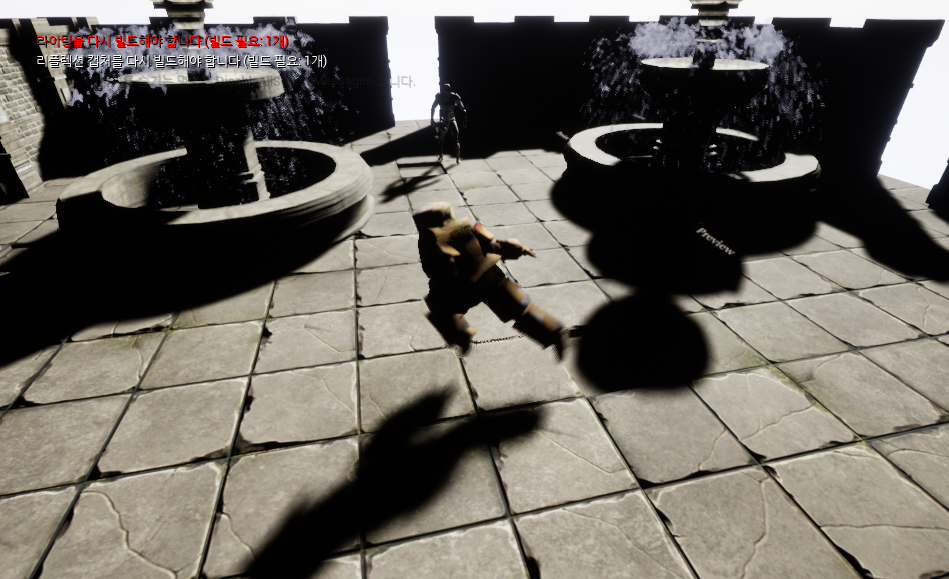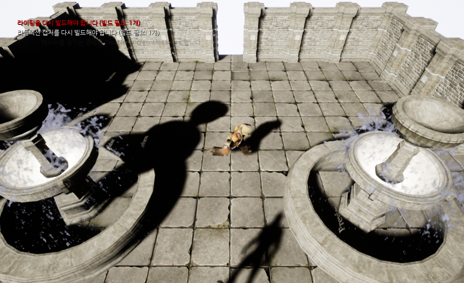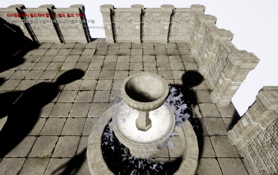 이전 코드에서 카메라 전환 속도를 조절하기 위해 Interp 를 사용했었는데, 자세히 보면 카메라 시점이 변환되는 도중이라는 것을 눈치챌 수 있다(카메라 노출을 길게 잡은 것처럼, 분수가 뿌옇게 보임).