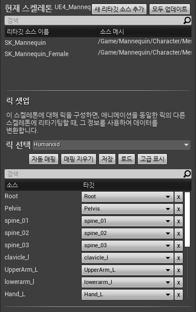 먼저, 리타깃할 마네킹을 열고, "릭 선택" 에서 인간형 릭을 선택한다.