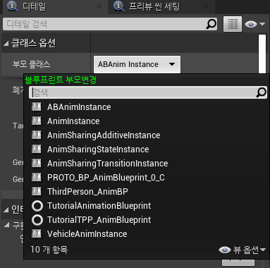 먼저, 클래스 세팅에서 부모 클래스를 방금 생성한 ABAnimInstance 로 설정해 준다.