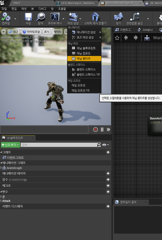 먼저, 애니메이션 블루프린트에서 몽타주를 생성한다.