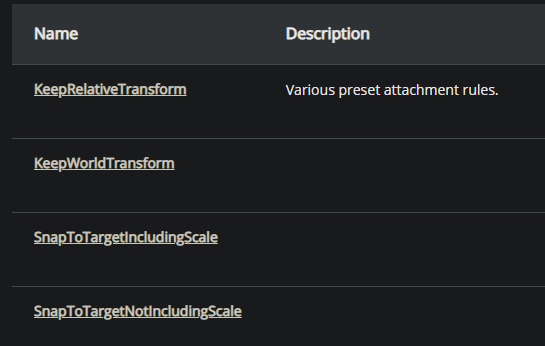 NewWeapon->AttachToComponent(GetMesh(), FAttachmentTransformRules::SnapToTargetNotIncludingScale, WeaponSocket);