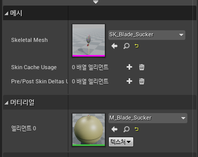 블루프린트 스켈레탈 메시에서 SK_Blade_Sucker 를 선택한다.