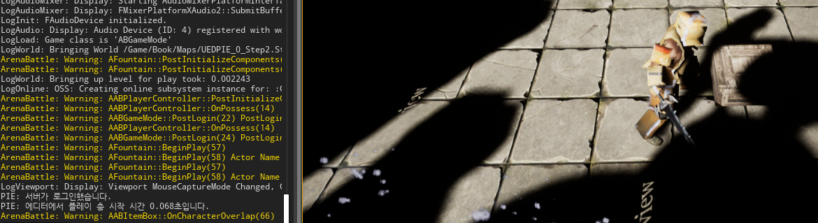 이제 캐릭터가 아이템 박스를 통과할 때마다 오버랩 델리게이트와 바인딩된 함수가 실행돼 로그가 출력된다.