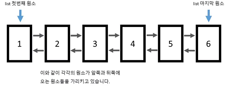 리스트는 양방향 연결 구조를 가진 자료형이다.
