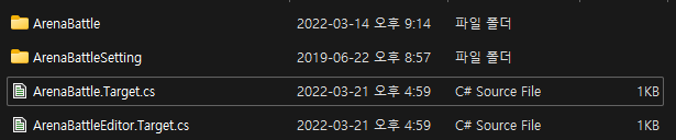 - 모듈 폴더와 빌드 설정 파일 : 모듈 폴더와 모듈명으로 된 Build.cs 파일