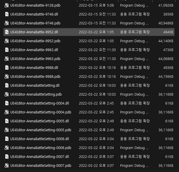 빌드가 완료되면 Binaries 폴더에 새로운 파일이 생성되는지 확인한다.