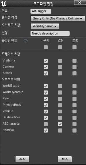 이때 ABTrigger 라는 콜리전 프리셋을 사용한다.