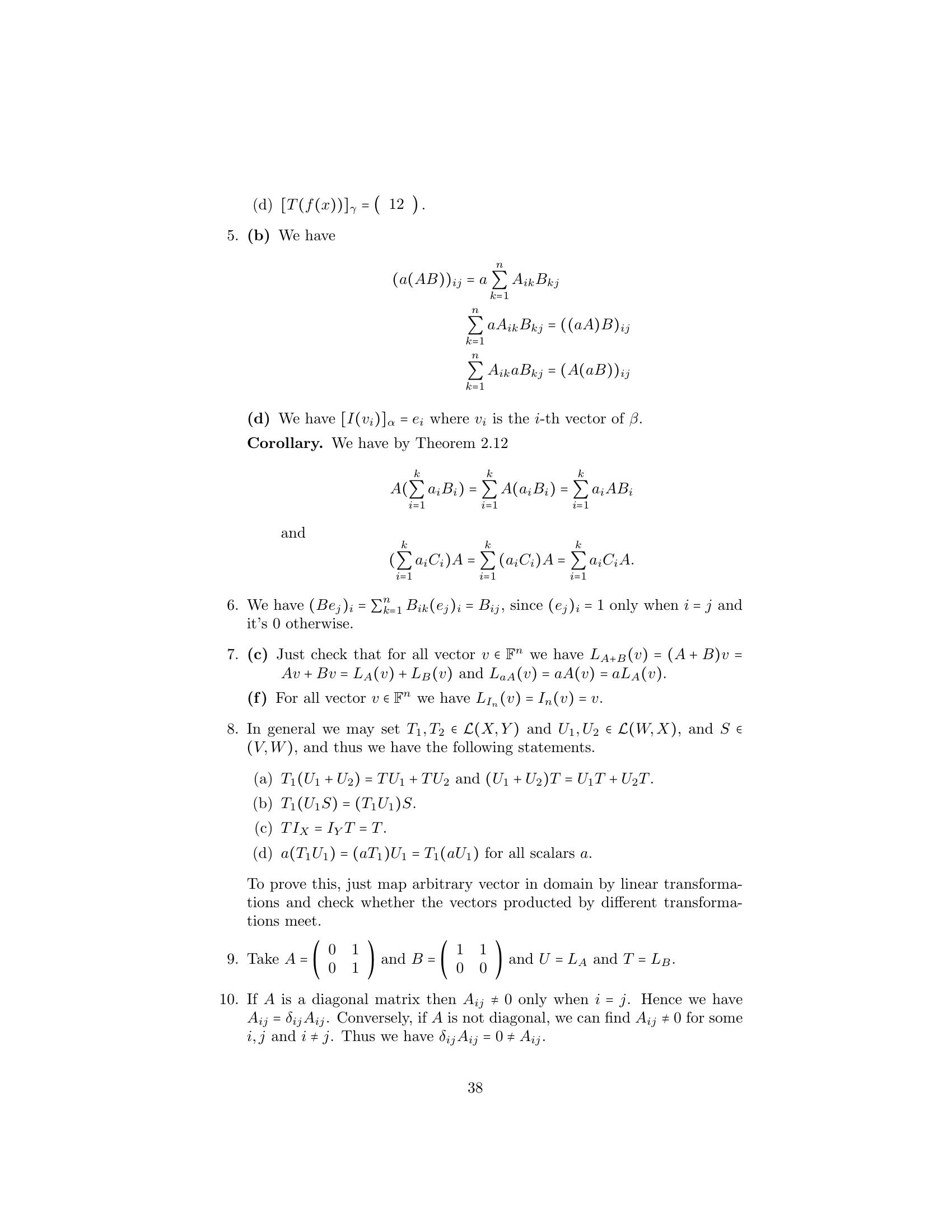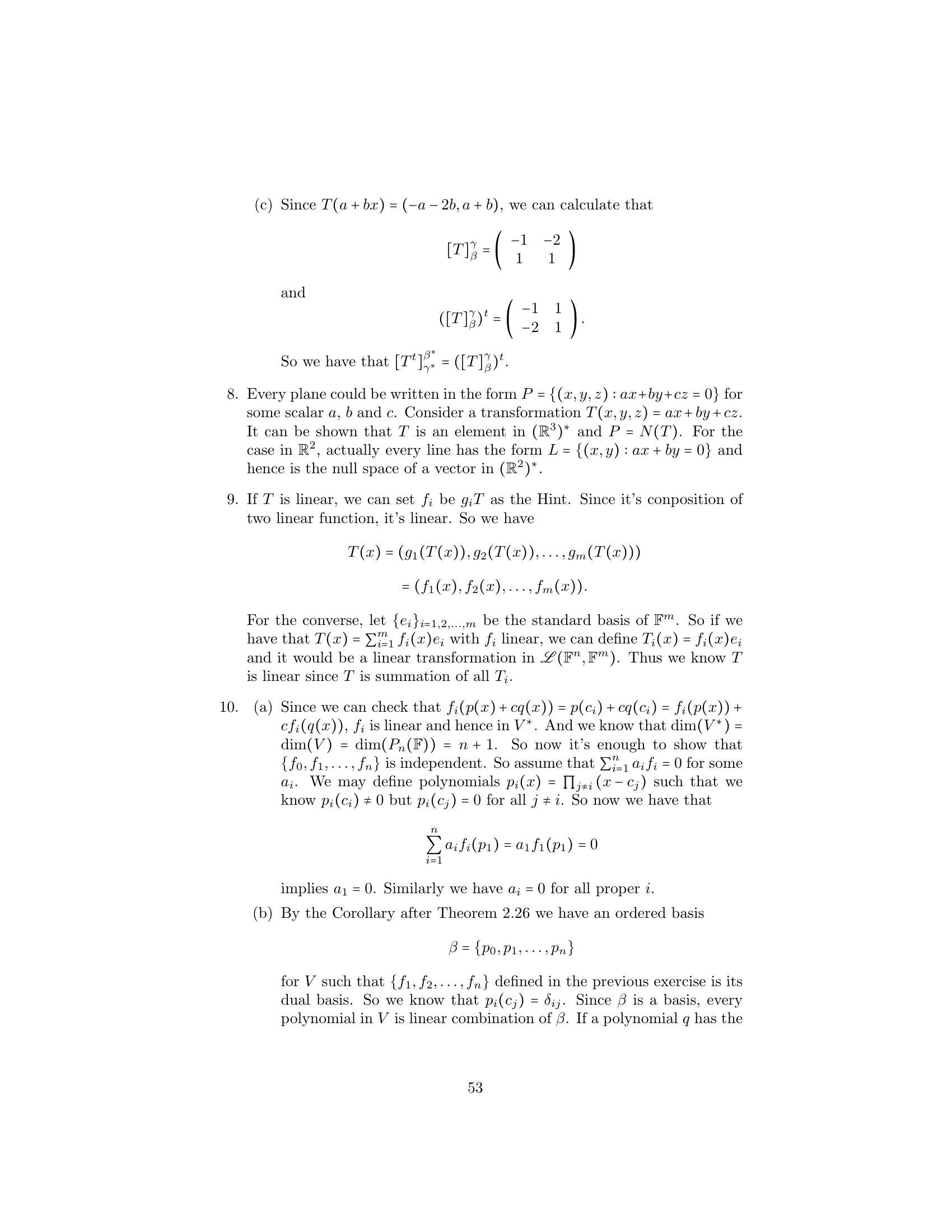 6.T : Mn×n (F ) → F defined by T(A) = tr(A). Recall (Example 4, Sec-