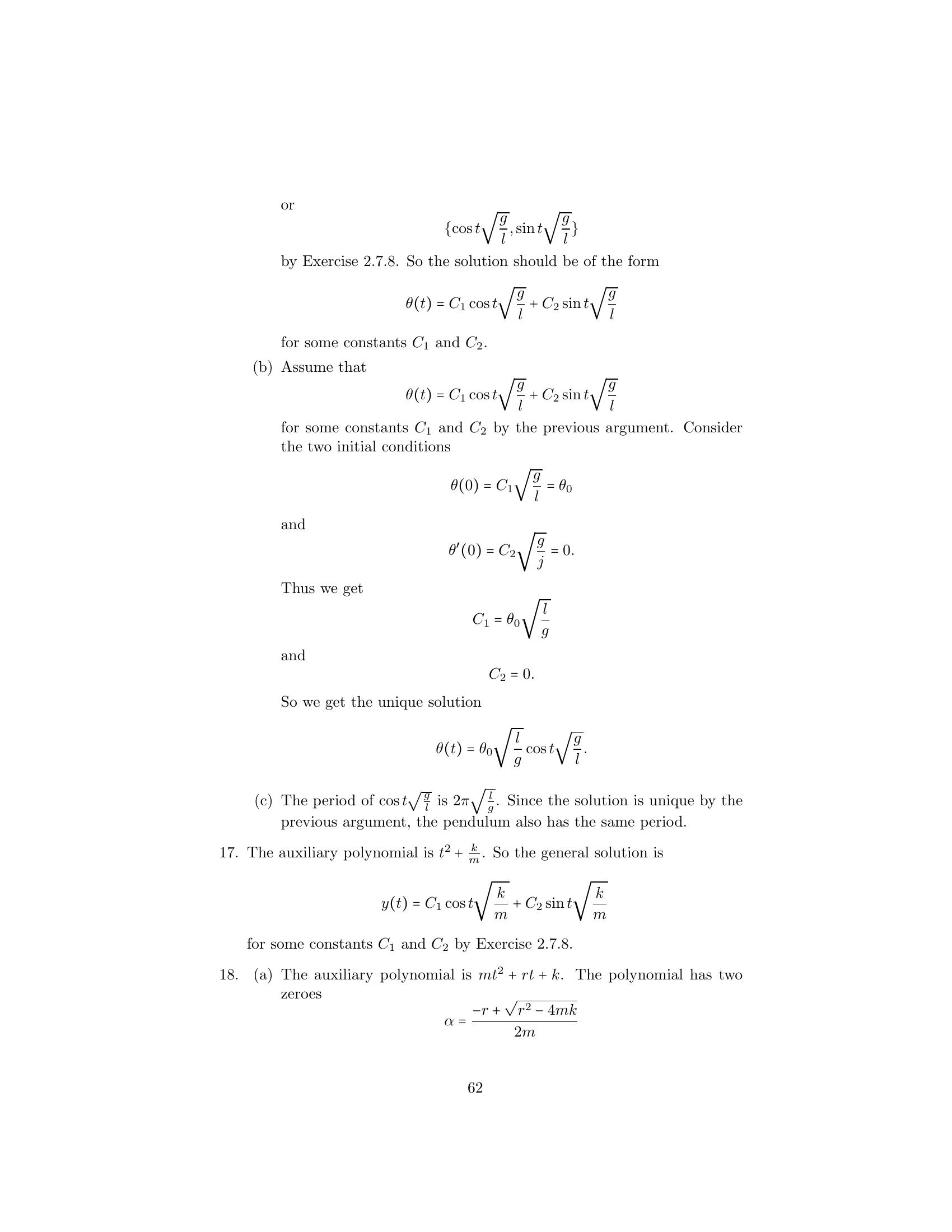 (c) Prove that it takes 2π l/g units of time for the pendulum to make