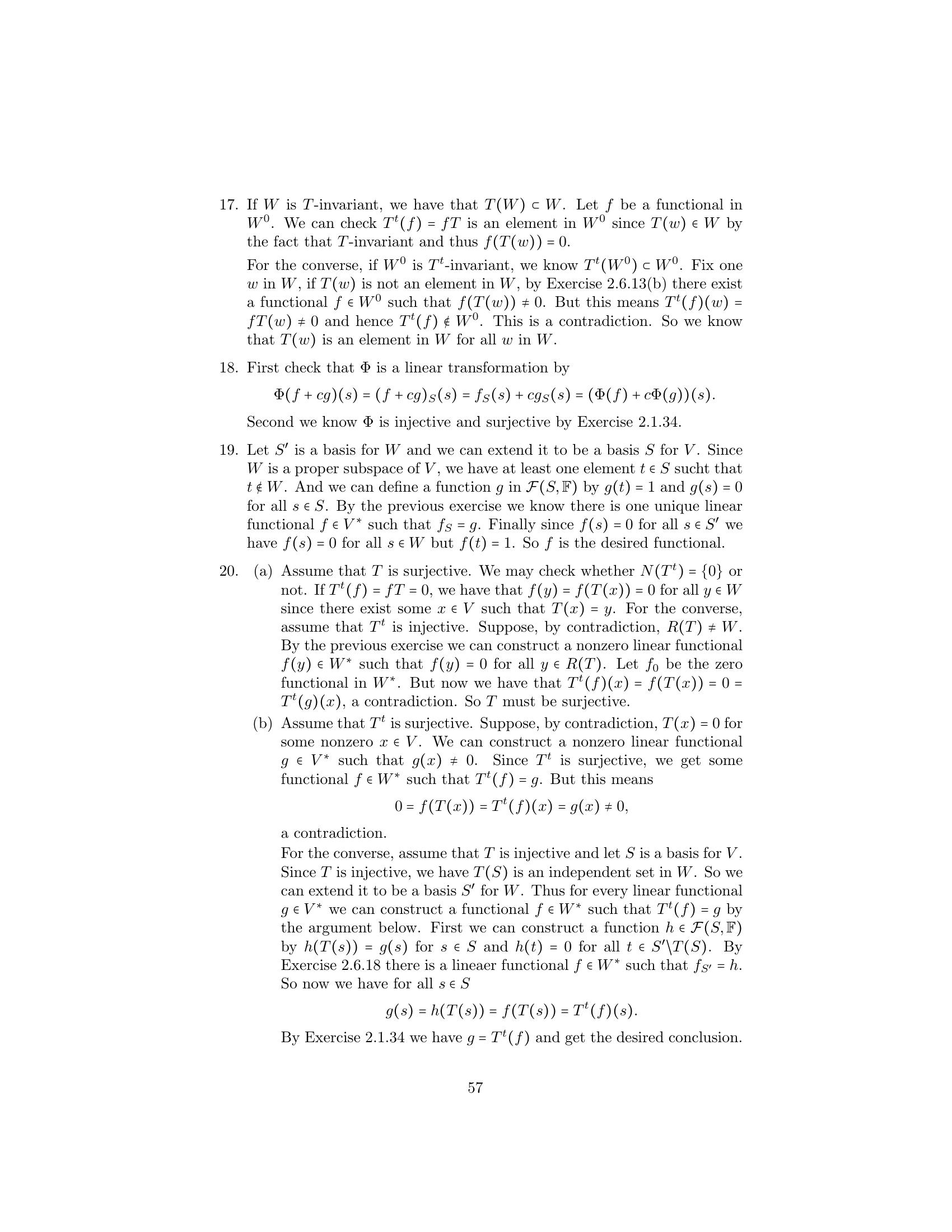 17. Let V and W be finite-dimensional vector spaces and T : V → W be