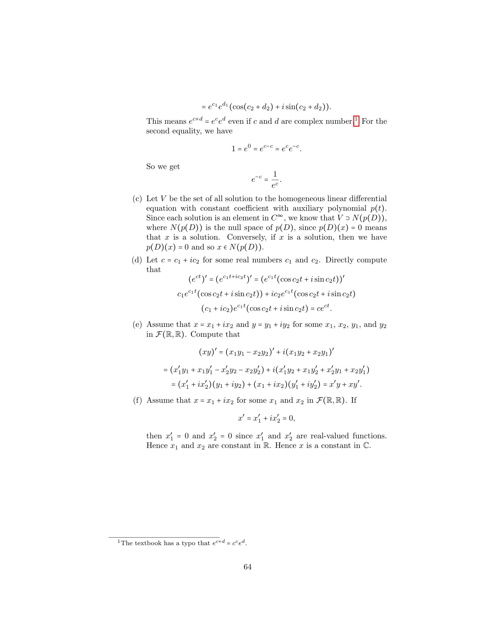 (e) Prove the product rule for differentiating complex-valued func-