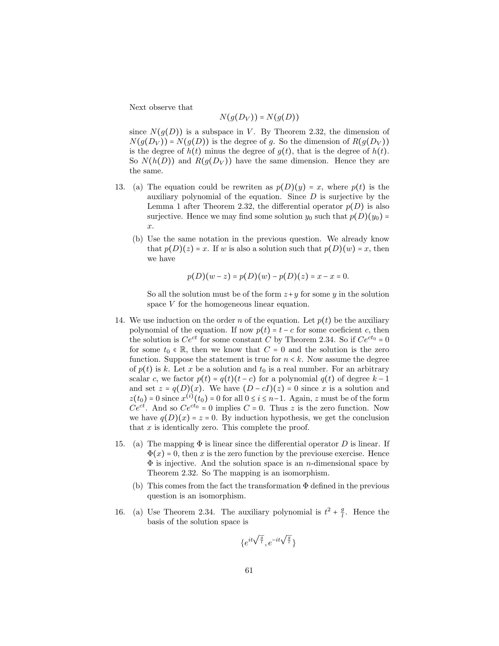 15. Let V be the solution space of an nth-order homogeneous linear dif-