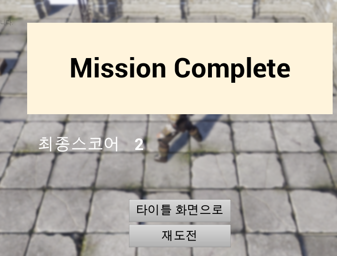 이제 플레이어가 죽거나 조건을 만족하면 다음과 같은 결과 UI 가 뜬다.