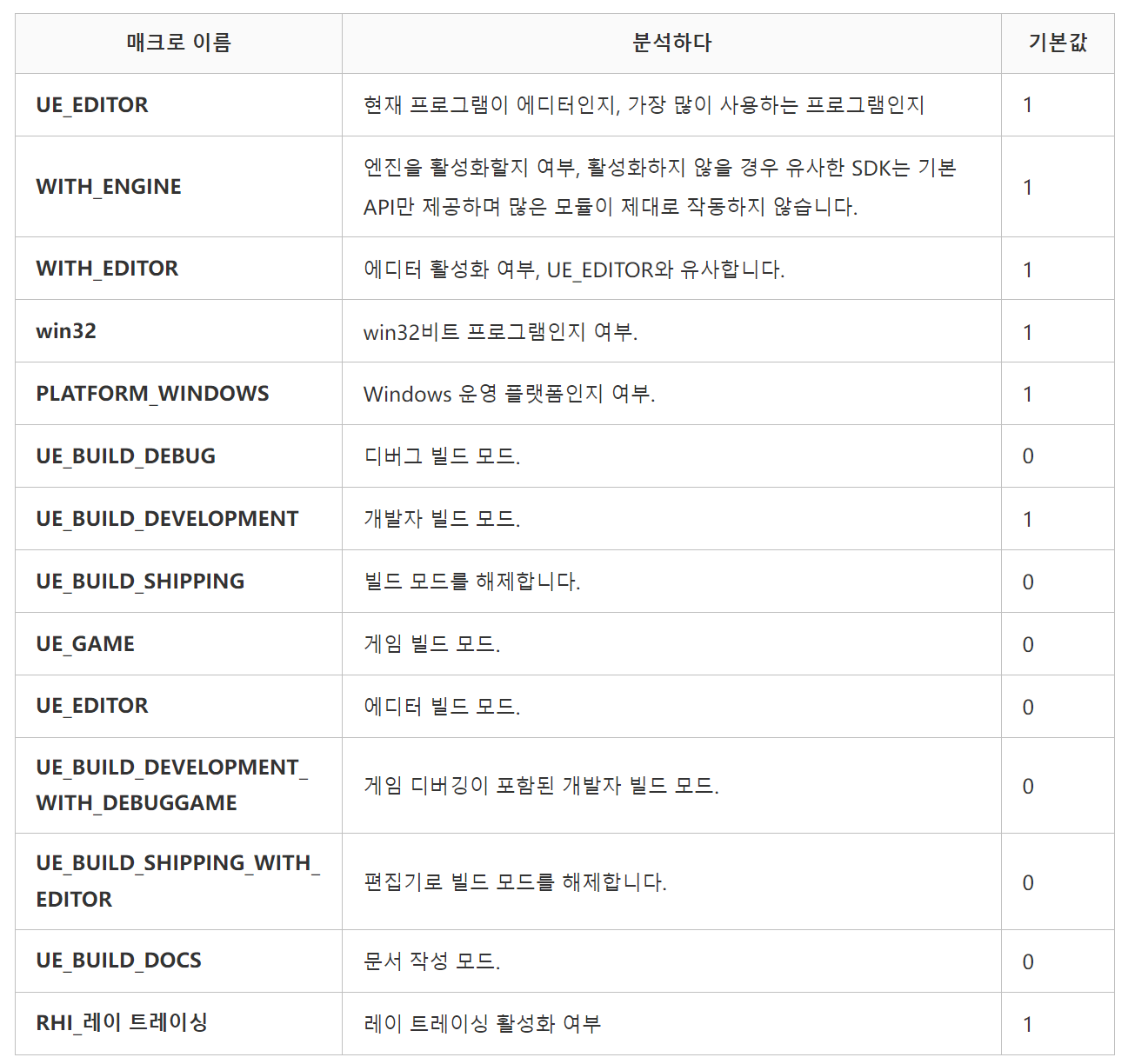 각각의 매크로에 대한 설명은 다음과 같다 :