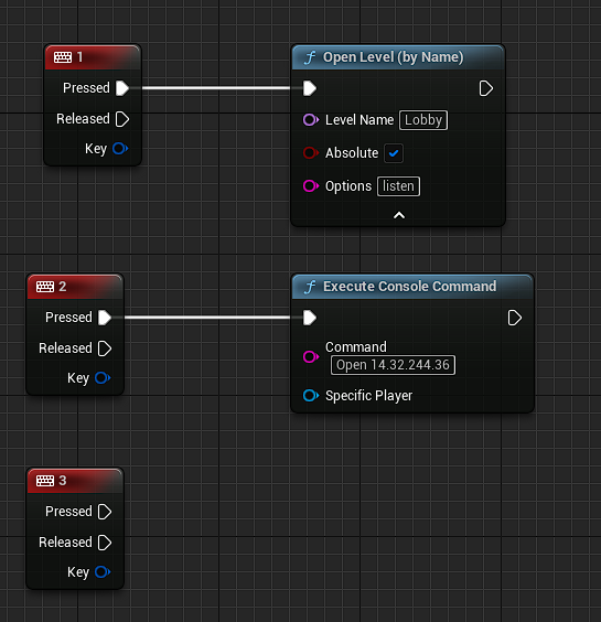 참고로 Lobby 는 Default 설정의 Map 을 만든 것이고, Open 13.32.244.36 은 Local IPv4 Address 이다.