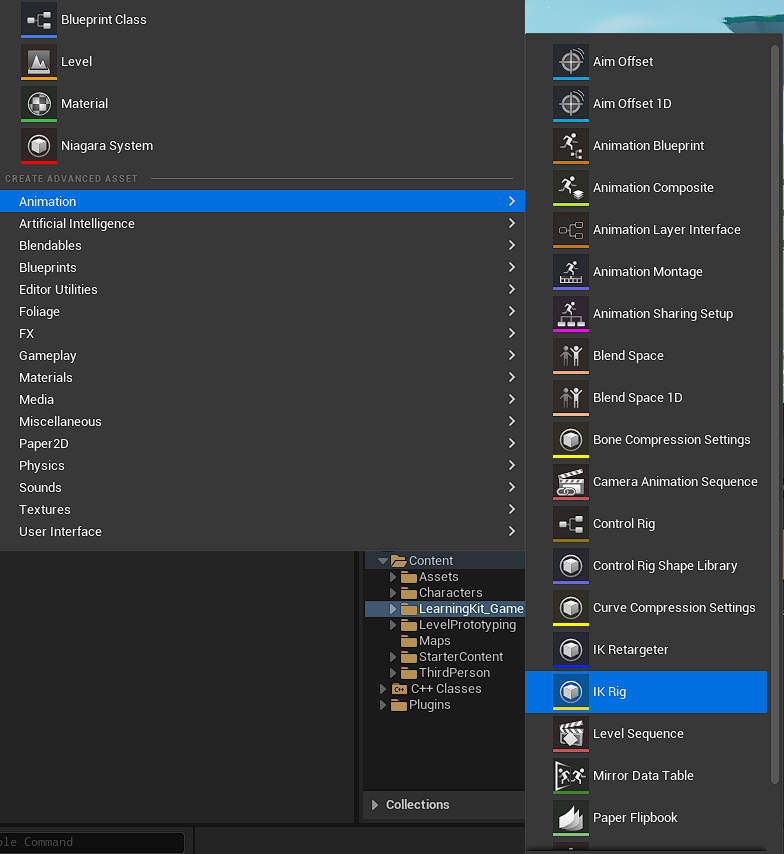 우리가 원하는 스켈레탈 메시 (여기서는 SK_Epic Character) 에 기반한 IK_Rig 을 생성한다. 이름은IK_Blaster 로 한다.