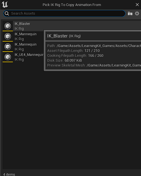 Source 를 기존의 IK_Mannequin 으로, Target 을 추후 IK_Blaster 로 잡아주면 된다.