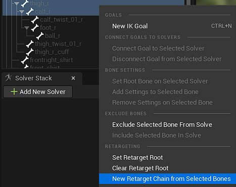 그 후, 기존의 IK_Mannequin 과 같은 이름의 Chain 들을 만들어 주면 된다. 방법은 아래와 같다.
