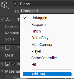 태그 추가는 다음과 같이 Inspector 창에서 간단하게 진행할 수 있다.