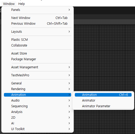 먼저, 애니메이션 창을 연다.