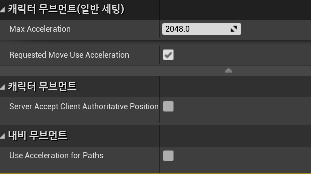 2. CharacterMovement -> NashMovement 에서 Use Acceleration for Paths 체크하기
