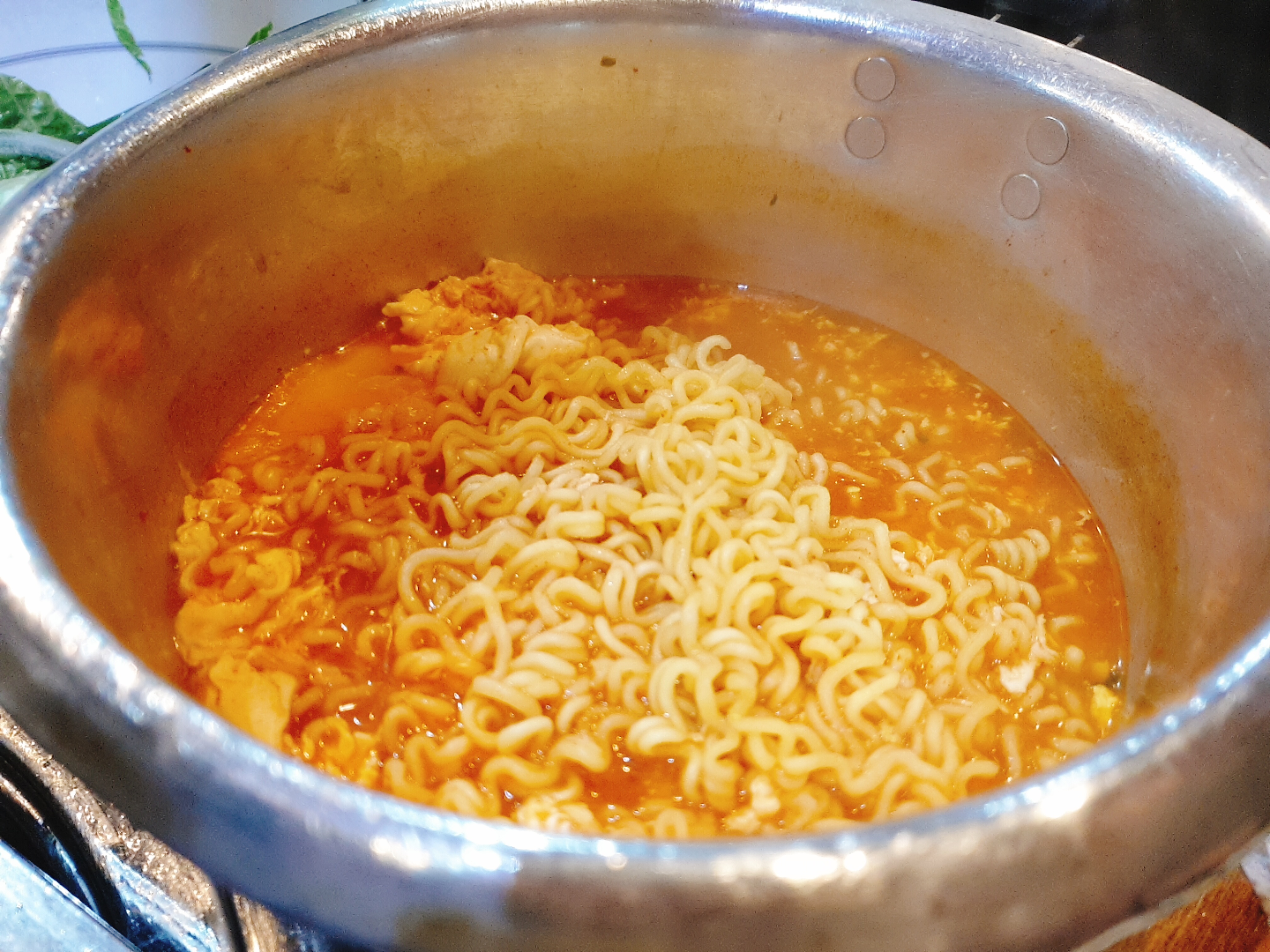 소갈비살이 1.4키로에 59000원이다! 라면, 김치전, 계란은 무한이다ㅋㅋ